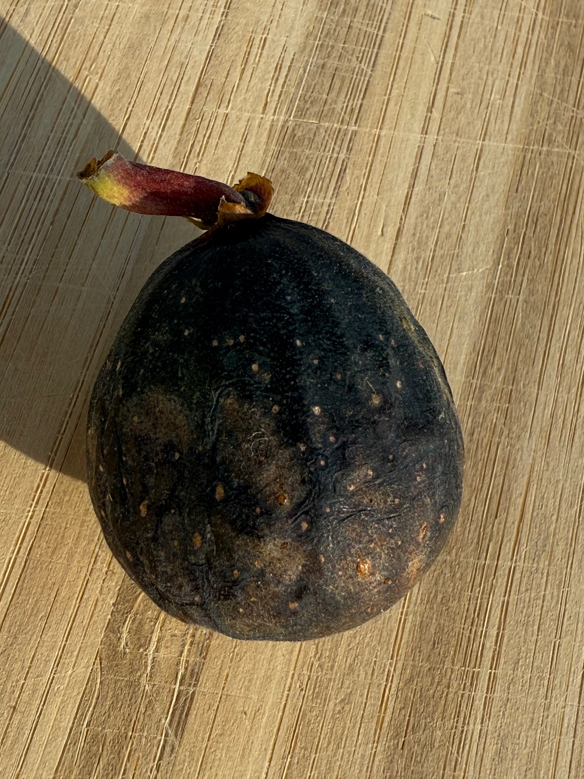Disclaimer: There is still a lot to learn about this tree and it's fruit. We only know where it was found, and that it produces fruit. We do not know if it is a common fig, it's cold hardiness, or it's fruit quality. While we hope this is a unique variety, it is likely that it is a known variety that was imported to the location it was found by AJ where he brought it back to his home to grow. Once we learn more about the fruit and its characteristics, we will update our descriptions and the buyers.