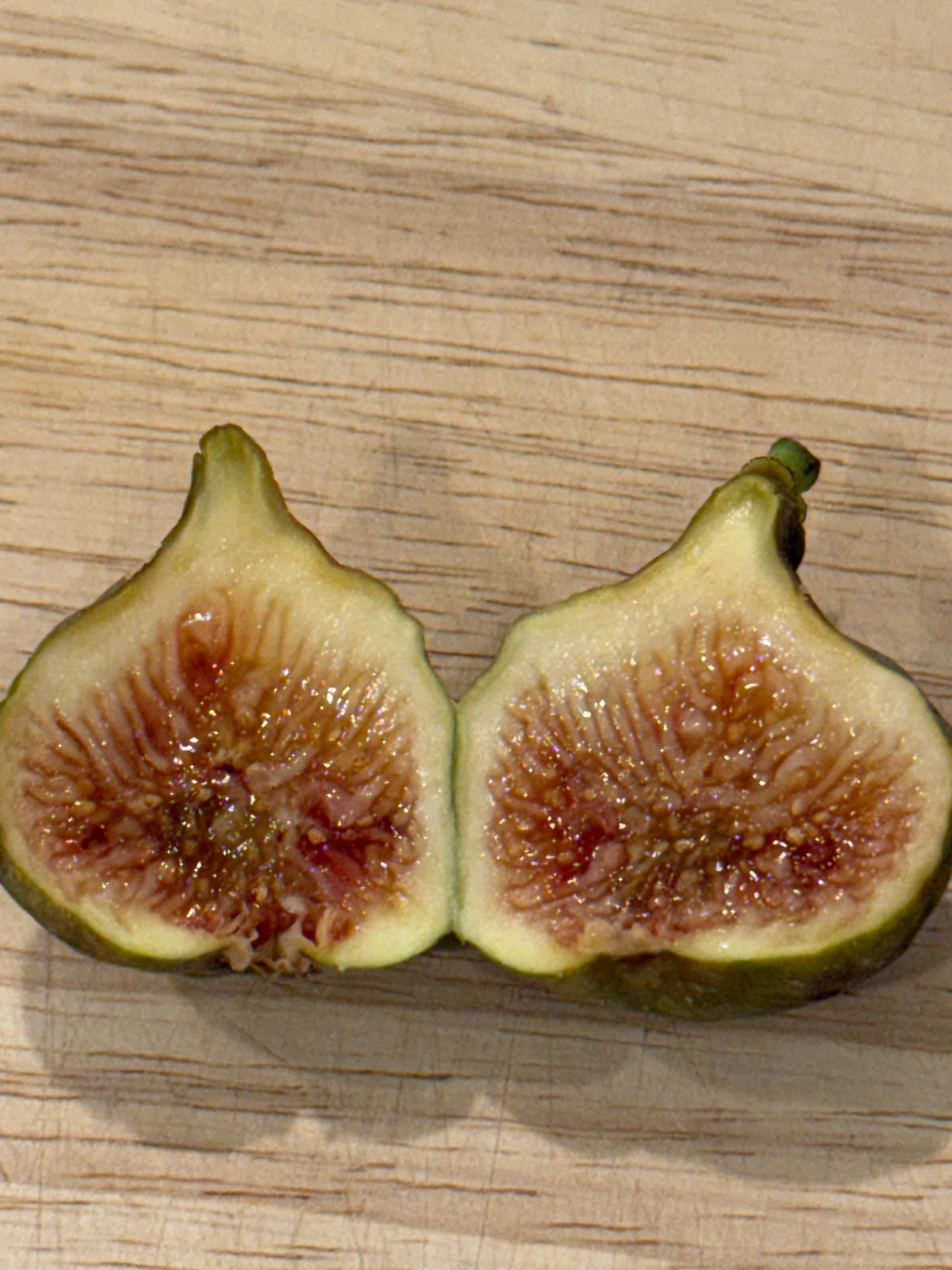 The LSU Tiger fig is a medium to large, productive variety developed by Louisiana State University, notable for its striking purple skin often marked with light, almost variegated striations. Its flesh is a deep red to maroon, offering a sugary-sweet flavor with a berry finish, and it performs well in both hot, humid climates and regions with shorter growing seasons