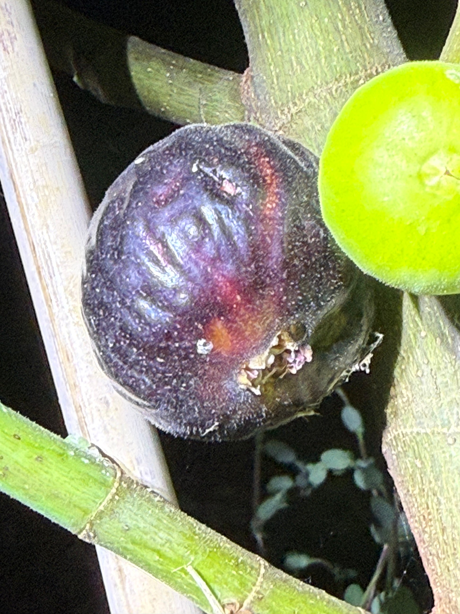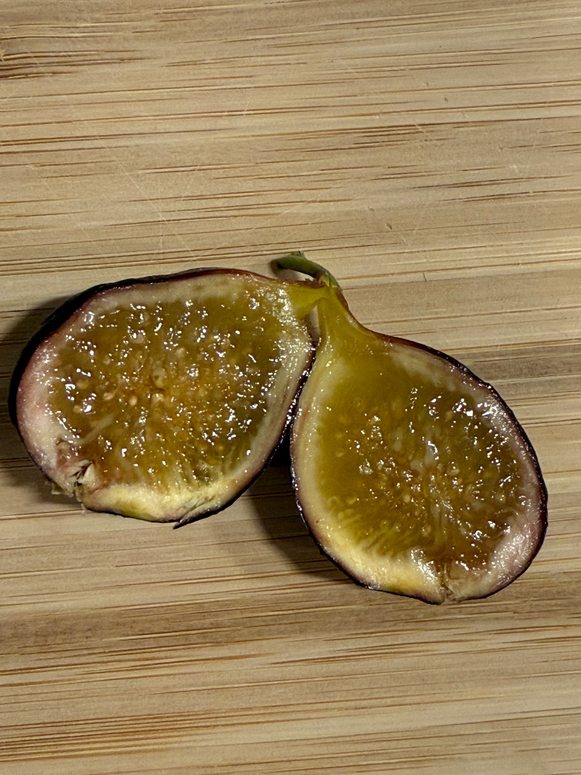 Juicy texture like a grape, very different than the jammy or dense texture you get with most figs. Has a light and refreshing sugary aftertaste. Very interesting fig, deep purple skin with gold flesh. Very productive and vigorous grower!!