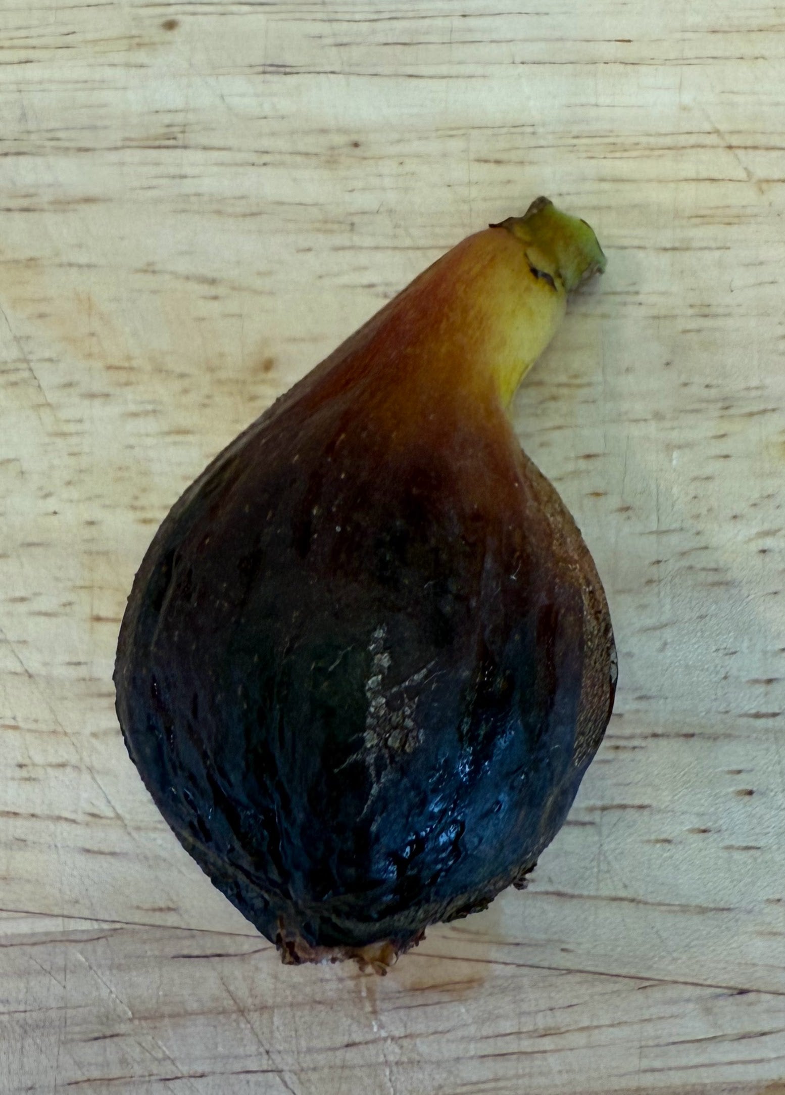Brebas harvested first week of June. Small, 17g. Deep purple exterior with honey-like interior. Sweet, tasty, hints of honey and berry. Delicious!